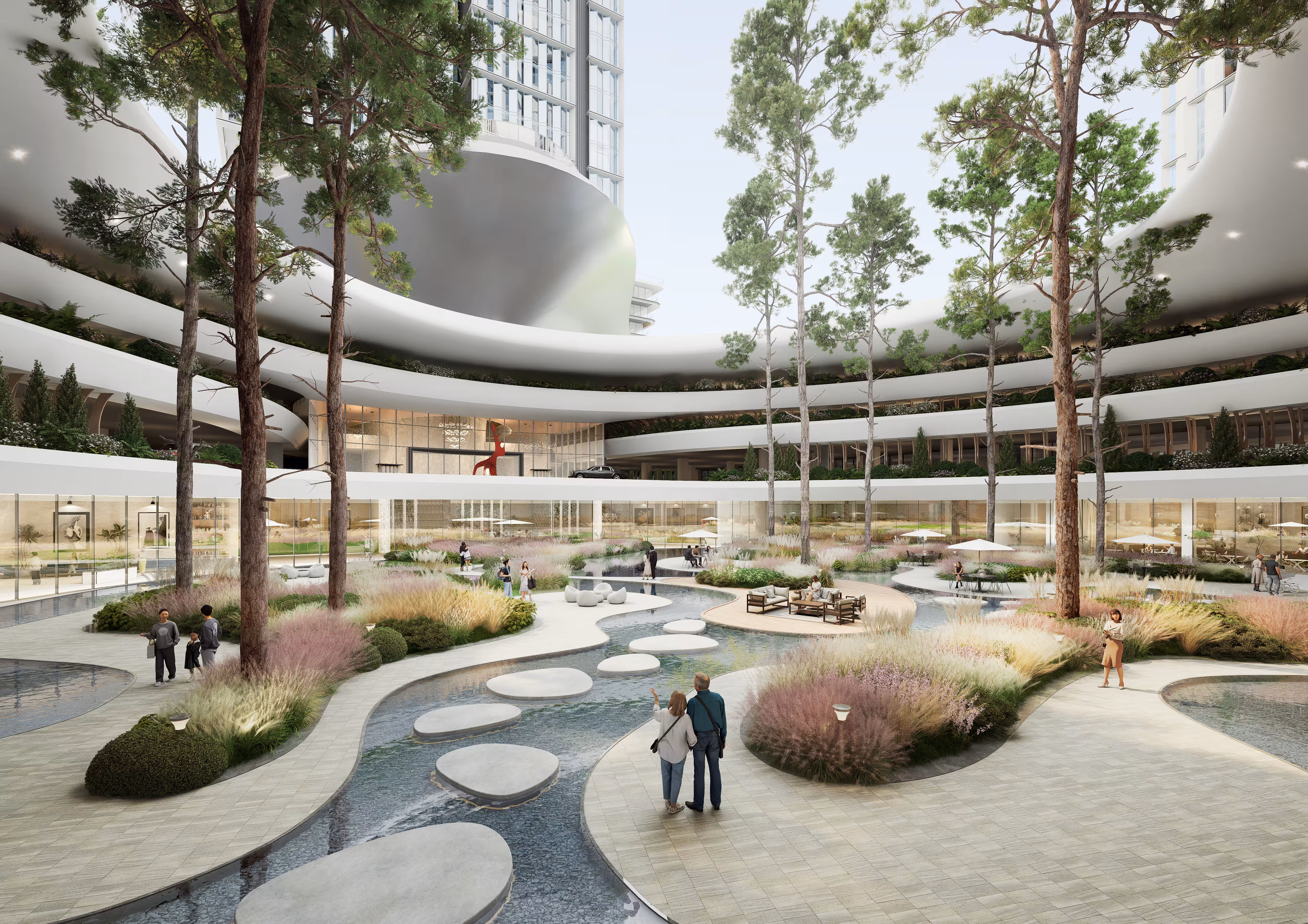 Theproposed redevelopment significantly transforms the site, introducing 1,930units with a total gross floor area of 501,999.29 square meters, including 257rental units. The winning design aims to fully leverage the site's iconic viewswhile enhancing natural ventilation and urban connectivity. The plan reducesthe number of towers to 10, with heights reaching up to 49 stories and 183.5meters, strategically arranged to preserve sightlines and optimize airflow.Additionally, the design incorporates two levels of underground parking and a6-meter-high raised deck to improve construction efficiency andcost-effectiveness.
